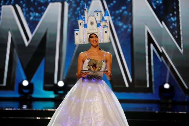 A candidata do Vietname, Le Hang, durante o desfile de trajes nacionais Reuters/ERIK DE CASTRO