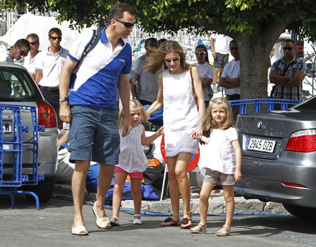 A família real espanhola assistiu, como é habitual, ao segundo dia da Copa do Rei de Vela no Clube Náutico. O príncipe conduziu o carro até ao clube, de onde Letizia saiu de mão dada com as filhas. A princesa trajou um simples vestido branco curto e as infantas vestiram blusas brancas e calções coloridos, enquanto Filipe optou por uns calções compridos e um pólo azul e branco.