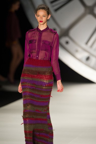 O miolo do dia coube a Jefferson Kulig, que misturou estampados vários, castanhos, negros e primeiros coordenados positivamente primaveris, sempre sobre calçado desportivo e raso; a Fause Haten, que com a sua linha FH, cantou - ou melhor, o seu álbum foi a banda sonora numa sala cheia de rosas e com uma colecção com um bom arranque (estampados tropicais de Brasil Inverno) que desembocou em vestidos de noite; e a Juliana Jabour, com uma paleta de cores vivas inspiradas no filme Darjeeling Express, de Wes Anderson, e por isso carregada de açafrões e em tom “naïve chic”, como anunciavam as suas malhas.