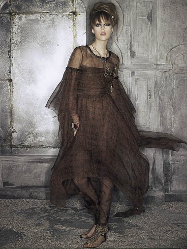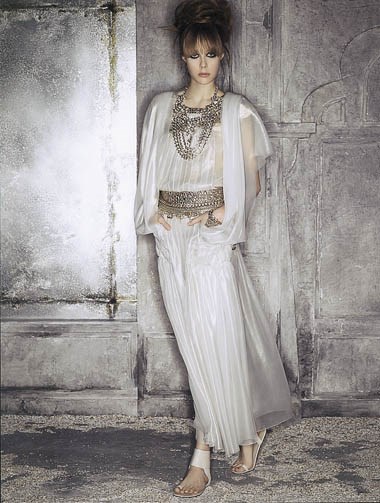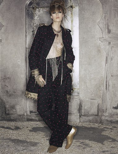 Já Lagerfeld misturou a inspiração indiana com o chic inglês de onde se destacam peças como o clássico tailleur Chanel cravejado de pérolas, túnicas em seda com diferentes cortes nas golas e diversas peças inspiradas nos clássicos saris - e com um toque de inspiração das incríveis jóias dos Marajás. Lagerfeld diz que o que gosta nas mulheres indianas – aquelas que podem comprar Chanel – “é que compram peças Chanel que misturam com as indumentárias tradicionais, sem nunca renunciarem ao seu estilo, que é muito forte.”
