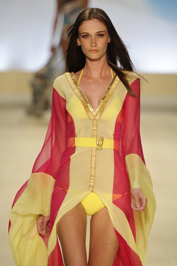 Nos anos 1990, as supermodelos reinavam e o problema, depois do zénite do fenómeno, foi que se tornaram mais importantes, mais visíveis do que a própria roupa que eram pagas para mostrar. Saberíamos melhor que víamos Claudia Schiffer do que uma peça da Guess. Seguiu-se-lhes um exército pálido de caras eslavas, brandas e muitos anos 2000. Domínio só quebrado por uma tal de Gisele Bundchen. E companhia morena, de Alessandra Ambrosio à mais quente e actual Izabel Goulart, corpo Victoria’s Secret. Ora no desfile da Cia. Marítima, e no desfile da Salinas, duas conhecidas marcas de biquínis de média gama, as suas herdeiras e uma sua antepassada mostraram a sua raça - um fruto multicultural, sim, miscigenado e muito escolhido do cesto que parece ser o Rio Grande do Sul e regiões adjacentes para onde migraram muitos alemães e nórdicos, produtores de algumas das maiores, melhores e mais louras modelos da actualidade.