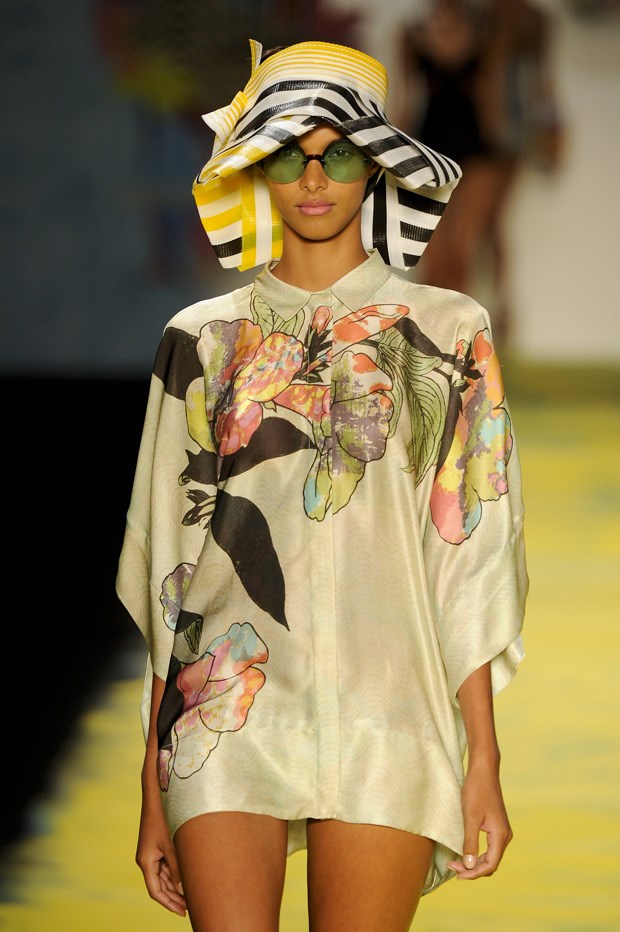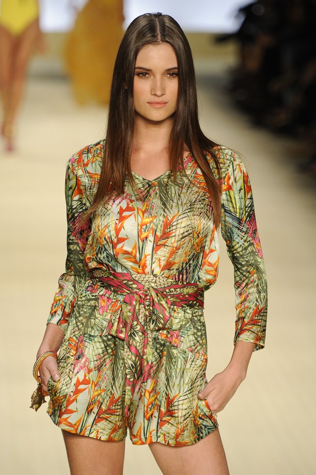 Nos bastidores da Cia. Marítima, entre triquínis e estampados havaianos que podiam passar pelo tropicalismo brasileiro, túnicas e sapatos de salto em amarelos e rosas penduravam-se ao lado dos retratos das modelos que os iam usar. Nem uma delas é carioca, muito poucas vivem sequer no Brasil. “São todas do sul [do Brasil] e vivem em Nova Iorque”, dizem-nos. Aline Weber, Alícia Kuczman, a veterana Shirley Malman ou Carol Francischini juntaram-se à popular Goulart para encher os olhos e as ideias da imprensa local, que chegou a notar que no desfile anterior, da aniversariante Salinas (30 anos), apesar das muitas opções de moda praia (caicai, push up, com folhos, recortes ou decotes profundos), havia cores mais mornas mas que ainda assim se adequariam ao Brasil.