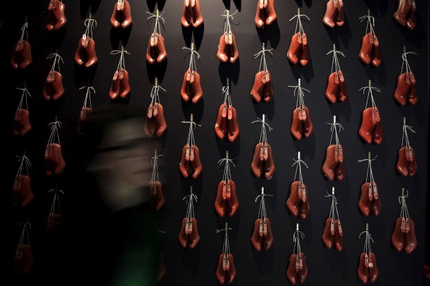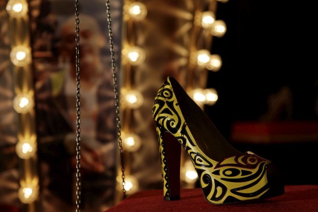- O designer Christian Louboutin entre algumas das suas criações REUTERS/Stefan Wermuth