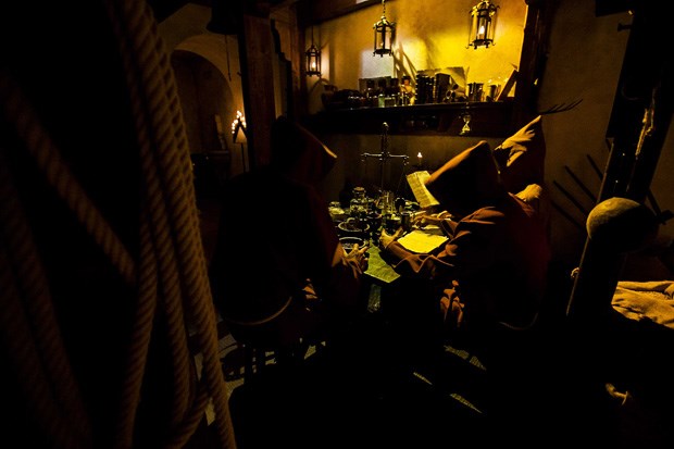 Quando a visita dá sinais de estar a terminar, um olhar para o copo vazio dado à entrada recorda-nos que há uma parte importante em falta. Abrindo uma cortina de veludo, atravessamos um corredor escuro ao som de canto gregoriano para chegar à adega monástica, onde cada passo aproxima-nos do século XVI. "A adega mostra como era a produção nesta época. Temos a mesa das receitas, o caldeirão e as tinas com cerveja", descreve Eduardo Nunes. Finalmente, um dos figurantes vestido de monge, enche o copo dos visitantes com cerveja fabricada exclusivamente para o museu, terminando a visita com a degustação da bebida da casa. "As horas foram-se dissolvendo e a espuma desceu nos copos...", palavras de Mia Couto que nos acompanham até à saída.