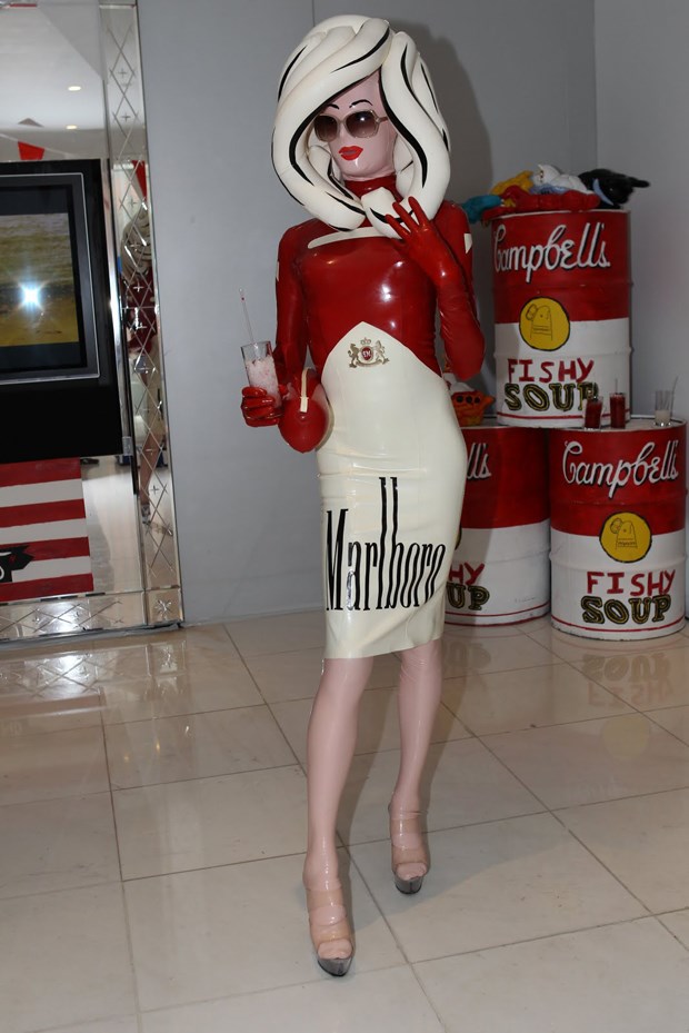 Anónimo por completo e por escolha pessoal é contudo fácil deduzir que se trata de um homem versado e com uma mensagem muito pertinente sobre e para o mundo actual. “A Pandemonia foi criada como um instrumento visual para descrever os tempos modernos, um pouco como um A Rake’s Progress do presente”, revela o artista por baixo do látex ao Life&Style. A obra A Rake’s Progress, de William Hogarth, do século XVIII, é uma série de quadros, qual storyboard, que descreve a queda de Tom Rakewell, o herdeiro de um rico mercador que perde todo o seu dinheiro na vida boémia quando chega a Londres. Pegando nessa imagem e evocando também o épico poema bíblico Paradise Lost de John Milton, que criou o conceito de pandemonium, lugar onde todos os demónios vivem, Pandemonia (plural de pandemonium) é uma artista post pop londrina, contemporânea mas igualmente revolucionária.