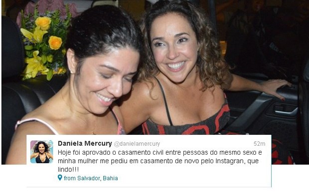 Já o casamento de Daniela Mercury foi bastante inesperado. A fogosa cantora brasileira, que tinha já sido casada por duas vezes, aproveitou uma viagem a Portugal para anunciar o seu noivado com a jornalista Malu Verçosa. O casamento aconteceu em Outubro, no Brasil, com a artista a declarar publicamente que “os homens não sabem cuidar” e que “mulheres em geral são mais fiéis”.