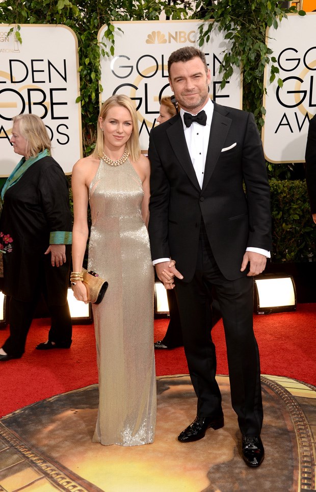 - Naomi Watts em Tom Ford ao lado do marido Liev Schreiber Jason Merritt / AFP