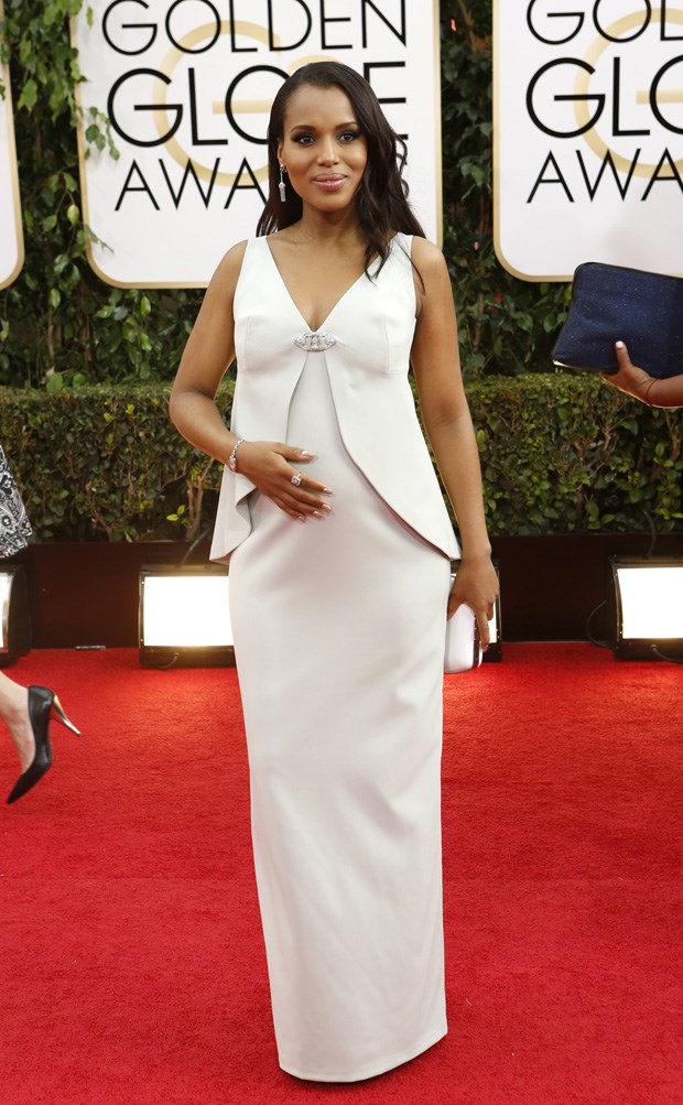 Mas não foram apenas os vestidos, as jóias, a maquilhagem e os acessórios a despertar interesse na passadeira vermelha. Drew Barrymore, Kerry Washington e Olivia Wilde exibiram as respectivas barrigas de grávida diante dos fotógrafos. Não é fácil usar um vestido de cerimónia quando se está grávida - alguém conseguiu esquecer o vestido Givenchy floral que fez com que Kim Kardashian parecesse um sofá na Gala do Met em 2013? Se Olivia Wilde optou por um vestido justo de manga comprida verde esmeralda, Washington usou um branco Balenciaga elegante e fluído. "A minha barriga é o meu melhor acessório esta noite", afirmou a actriz. Num extremo oposto, Drew Barrymore usou e abusou das aplicações de flores. O laranja e o rosa a pontuar um vestido branco transparente, irreverente e jovial, como Barrymore sempre se assumiu.