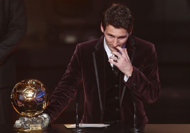 Para subir ao palco e receber a Bola de Ouro FIFA 2010, Messi volta a usar um blazer que deveria nunca ter sido criado: veludo negro chama a atenção para o seu tronco pequeno. E tendo ganho o galardão quatro vezes consecutivas foram também quatro as vezes em que se vestiu como Willy Wonka (personagem do filme Charlie e a Fábrica de Chocolate). Este ano, foi Cristiano Ronaldo quem levou para casa o prémio, mas o argentino teve a merecida atenção por parte dos meios de comunicação social. Para infelicidade de muitos olhos sensíveis a mudanças de intensidade luminosa, o fato bordeaux brilhante que Messi envergava criou por diversas vezes esse fenómeno.