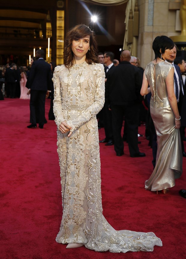 Mas pensar em cores traz à mente Lupita Nyong’o que, sendo uma novata nas passadeiras vermelhas, rapidamente se assumiu como ditadora de tendências. Este vestido Prada que Kelly Osbourne, em directo para o canal E!, baptizou de “Nairobi Blue”, foi feito à medida para ela. O decote fundo pode ter evidenciado a falta de formas femininas e o corte da peça ter começado uma série de paródias em que Lupita é comparada à Cinderela, mas este tom de azul sobre o negro da sua pele foi uma das melhores escolhas da noite – se não a melhor. Uma dupla vitória para a actriz de ascendência queniana nascida no México que ganhou a sua primeira estatueta na categoria de Melhor Actriz Secundária.