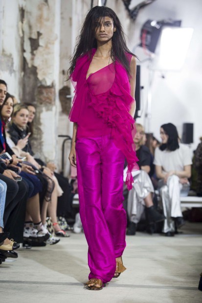 Terça-feira em Londres, no último dia da Semana de Moda da capital britânica: a jovem marca de autor criada por portugueses com maior projecção internacional apresentou uma colecção com materiais fluidos e transparências, mas com as mesmas raízes – há um q.b. de romantismo, sentido nas saias longas e nos folhos, contrabalançado com as bainhas desfeitas, a ganga forte e o couro.