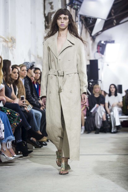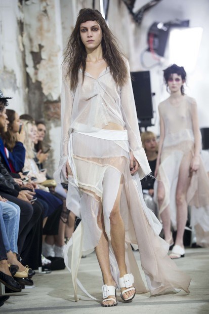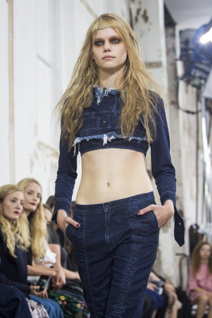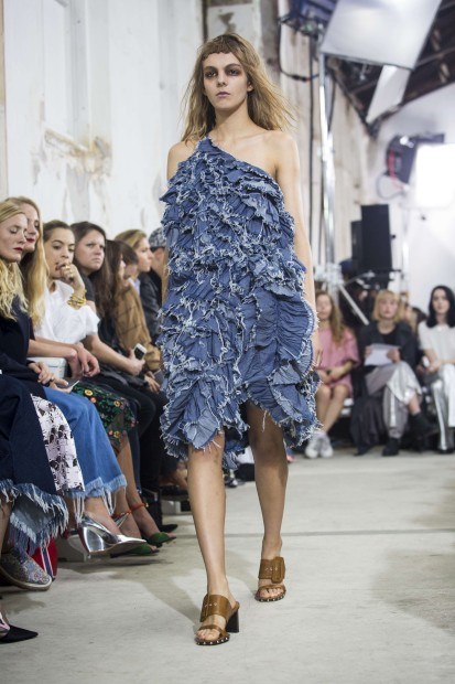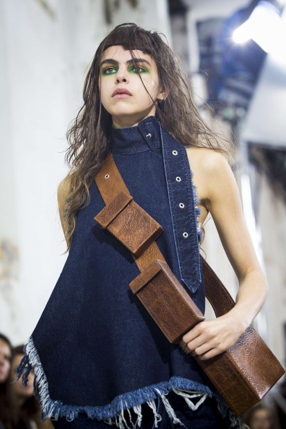 Marta Marques e Paulo Almeida, a dupla portuguesa vencedora da 2.ª edição do LVMH Prize, da Louis Vuitton, não fugiram à sua matriz da ganga trabalhada e desfiada, mas introduziram novos materiais e cortes para a Primavera/Verão 2016.