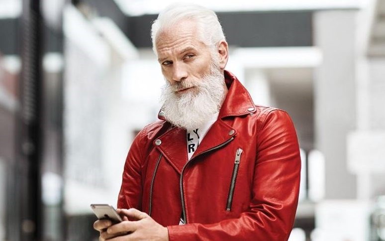Homem de barba branca e fato vermelho trocado por Pai Natal sexy e com roupas de designers.