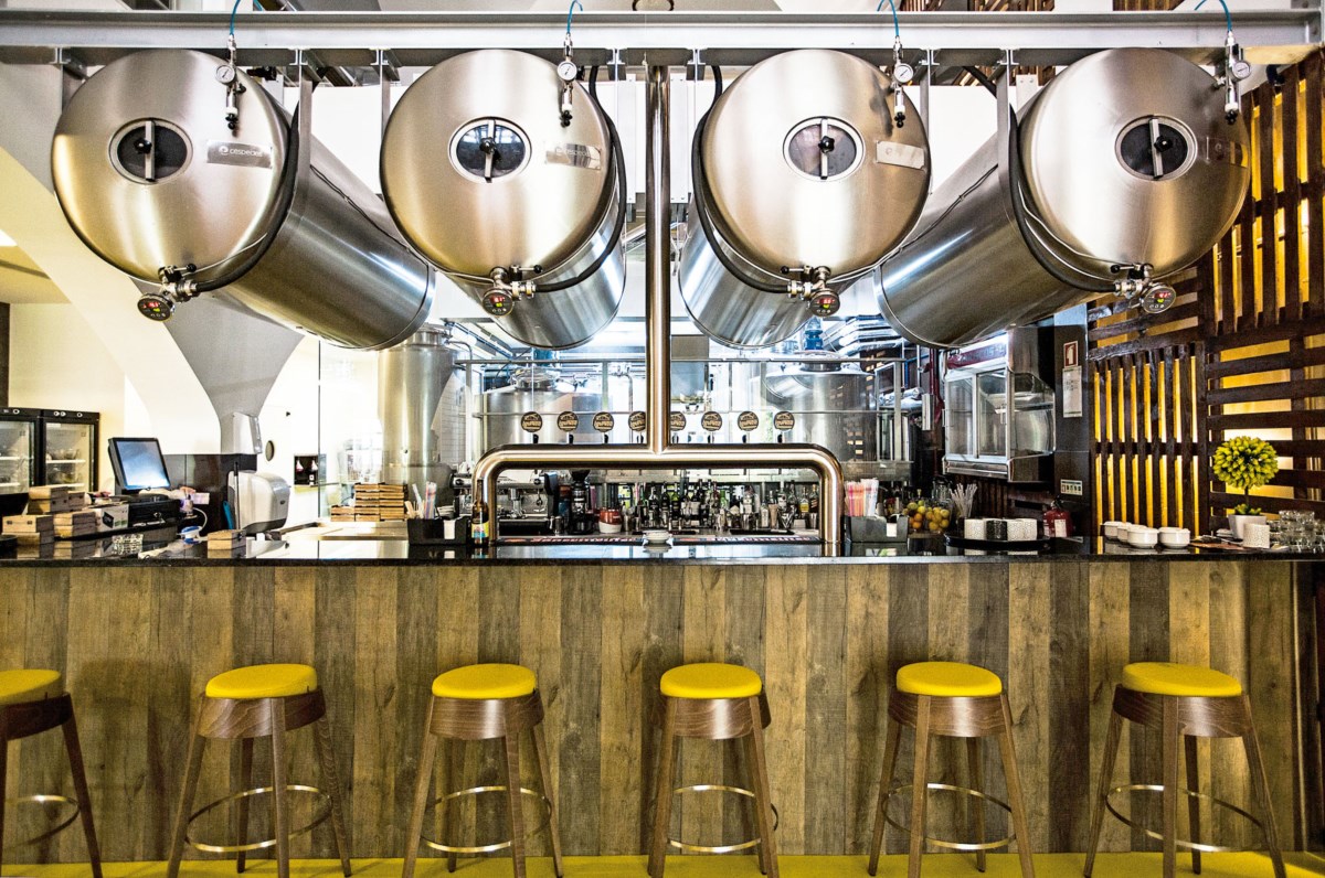 A cervejaria é também cervejeira e as quatro cubas gigantes que pairam por cima do balcão de serviço não deixam dúvidas: aqui bebe-se a cerveja feita pela casa e é possível assistir a todo o processo de produção, liderado por Edgar Dias. O mestre cervejeiro de 35 anos quer ver a fábrica a produzir seis mil litros da bebida por mês, durante o horário de abertura do espaço. Para isso instalou a fábrica entre o balcão e a cozinha, separada por paredes de vidro, e é aí que se dedica à criação de quatro tipos de cerveja artesanal (e mais um sazonal).