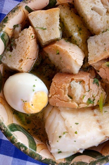 No princípio era comida de camponês que todos os dias agarrava na navalha para migar o pão para o alguidar. Agora a açorda pode ser rica, com pescada, amêijoas, ovos, figos. Mas a alma não mudou: poejo, coentros, azeite, alho e água a ferver.