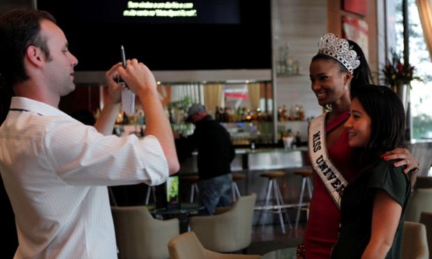 - A Miss Universo, Leila Lopes, posa para fotos com fans Paulo Whitaker/REUTERS
