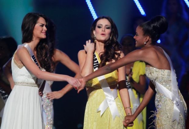 - A ansiedade de Miss Angola Leila Lopes (D), Miss Brazil Priscila Machado (C) e Miss Ukraine Olesia Stefanko (E), momentos antes de se saber a decisão do juri Paulo Whitaker/REUTERS