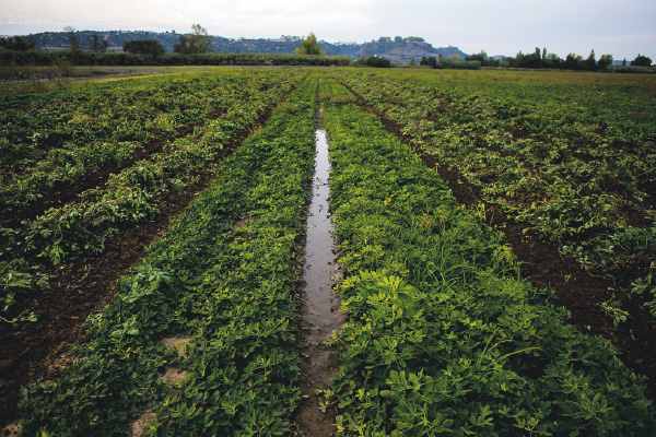 Dentro da Quinta da Alorna, a zona ideal para o cultivo é a que se situa mais a Norte, junto ao Tejo, porque, diz Gustavo Caetano, é uma terra de aluvião, mais rica. “O amendoim dá-se bem em solos bem drenados, com areias gordas e alguma capacidade de fornecer nutrientes naturais.” Dado que “no final do ciclo o amendoim vai fazer-se dentro da terra”, a qualidade desta é fundamental.