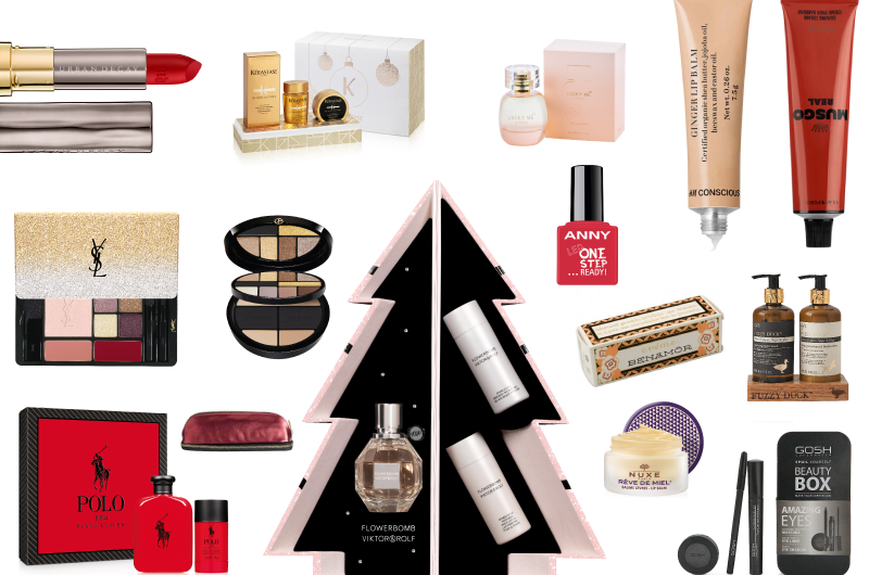 Uma selecção de produtos de cosmética, entre a maquilhagem, os cuidados para a pele e acessórios, para oferecer no Natal.