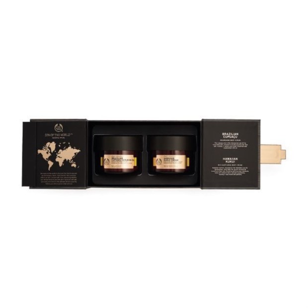 - Conjunto Blissful Spa Ritual com creme de corpo e scrub-in oil da The Body Shop. 40 euros The Body Shop