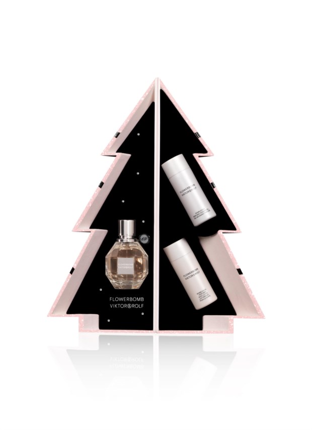 - Coffret com o perfume Flowerbomb, gel de banho e creme de corpo da Viktor & Rolf. 98,94 euros Viktor&Rolf