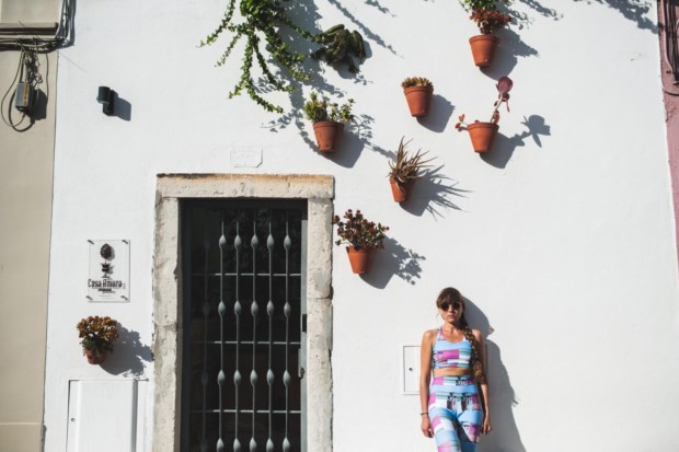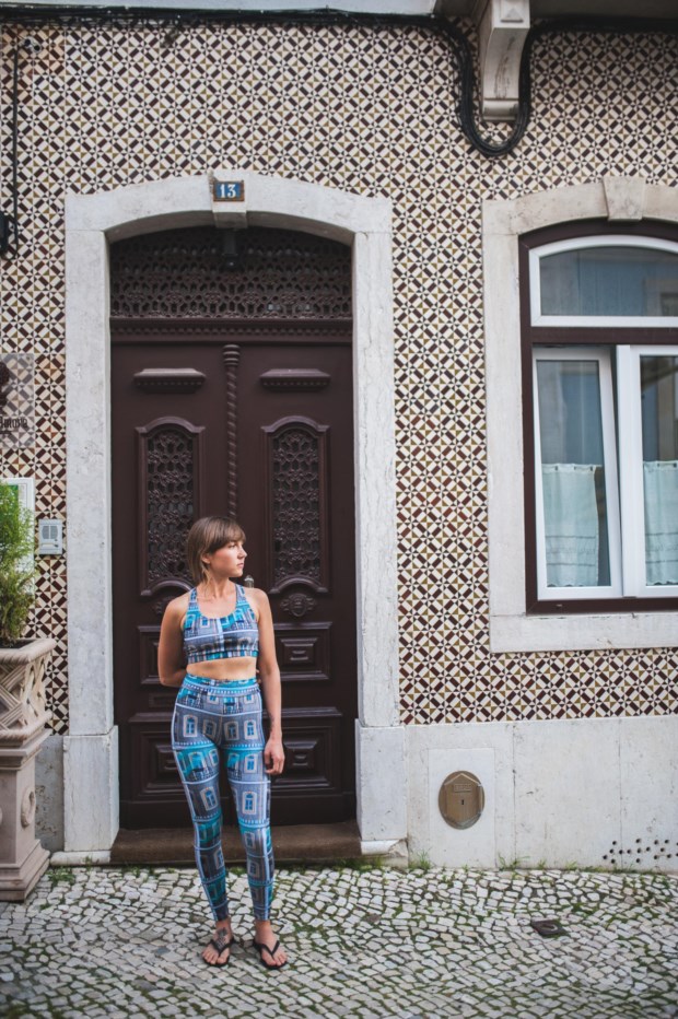 As leggings (115 euros) e os tops (75 euros), feitos num material à prova de água, têm estampados os azulejos da fachada da Casa Amora, a calçada portuguesa do jardim exterior da guesthouse, as telhas e os vasos de barro e até mesmo peças icónicas de Bordalo Pinheiro — Luís Kapinha é das Caldas da Rainha e as peças daquela região marcam presença na sua casa.