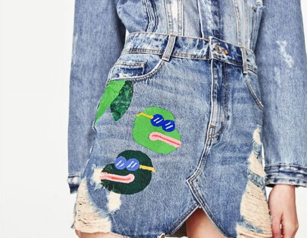 Depois de inúmeras críticas nas redes sociais, a Zara retirou do seu site uma saia que tinha à venda. A particularidade da peça, uma mini-saia de ganga, é que tinha duas rãs que parecem ser uma referência a um símbolo da extrema-direita norte-americana, o cartoon Pepe, the Frog, do autor Matt Furie.