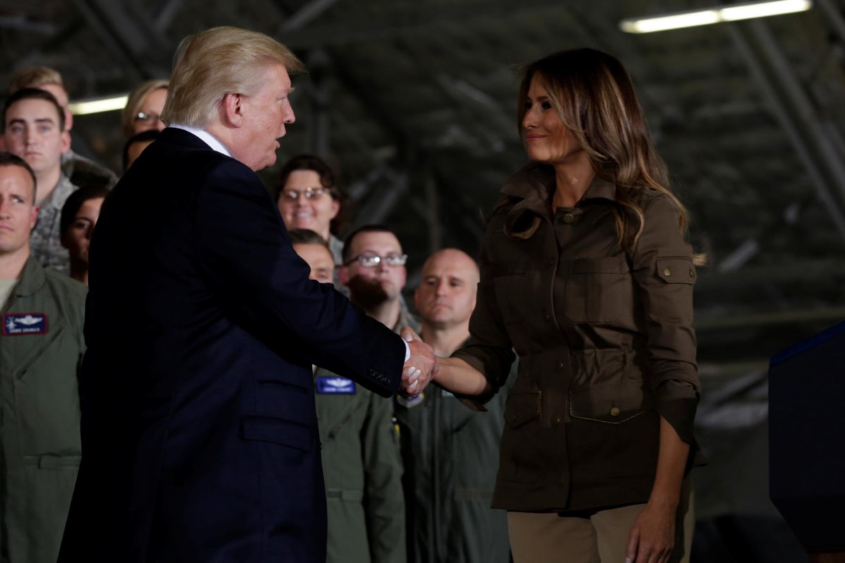 Um "passou-bem" e um empurrãozinho "e agora volte lá para o seu lugar" foi a forma de Donald Trump agradecer à sua mulher, Melania Trump, por fazer a apresentação do Presidente nas instalações das forças armadas de Joint Base Andrews, em Maryland. O casal não é propriamente conhecido pela sua cumplicidade e já vimos a ex-modelo eslovena enxotar a mão do marido, durante a visita oficial a Israel.