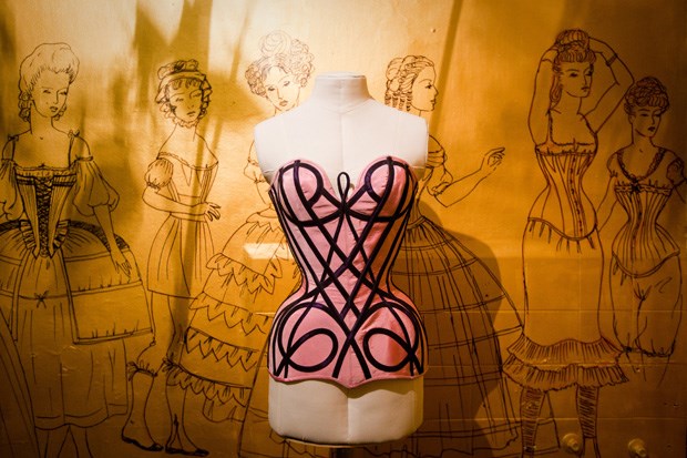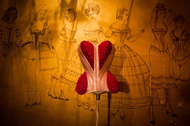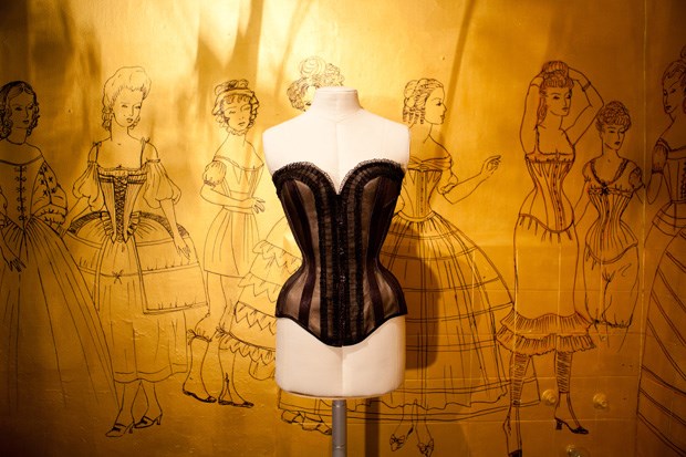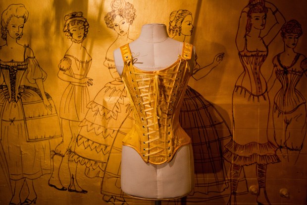 No terceiro piso, na primeira porta à esquerda, o número 306 assinala o espaço de Armando Gabriel. Lá dentro encontramos uma outra realidade, onde paredes pintadas de dourado contam a história do vestuário feminino ao longo dos séculos. E todas as imagens têm um denominador em comum: o espartilho.