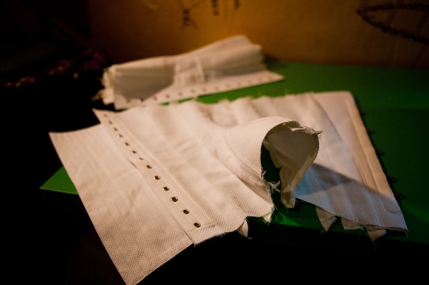O pequeno atelier de Armando Gabriel é discreto. Lá fora nada faz adivinhar que ali se encontra um espaço dedicado à fina arte dos espartilhos e só lá vai ter quem já conhece o caminho. Noivas e convidadas do casamento são as clientes que mais procuram o designer. Depois existem as clientes habituais, que têm um gosto particular pelo espartilho e que o usam no dia-a-dia. "Há quem se levante e o vista logo, nem que seja para andar por casa. É assim que se habitua o corpo, é preciso um treino. Existem regras para o uso do espartilho. É preciso controlar aquilo que se come, por exemplo. É preferível comer pouco e várias vezes do que tomar grandes refeições", esclarece Armando Gabriel.