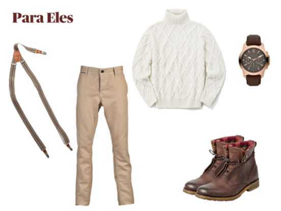 Suspensórios Camel Active €39 Calças !item na Farfetch.com €91 Camisola Fred Perry €229 Botas Massimo Dutti €120 Relógio Fóssil p.s.c.
