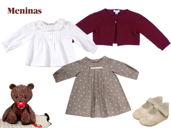 Urso Carolina Herrera €65 Camisa Knot €37,50 Casaco Knot p.s.c. Vestido Laranjinha €34 Sapatos Chicco p.s.c.