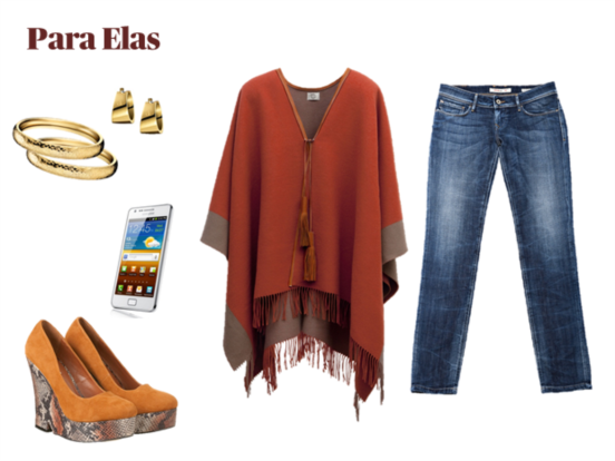 Pulseiras de aço inoxidável Calvin Klein €120 cada Brincos em pvd dourado Calvin Klein €95 Sapatos Primark €21 Poncho Hermès €810 Calças de ganga Salsa p.s.c.
