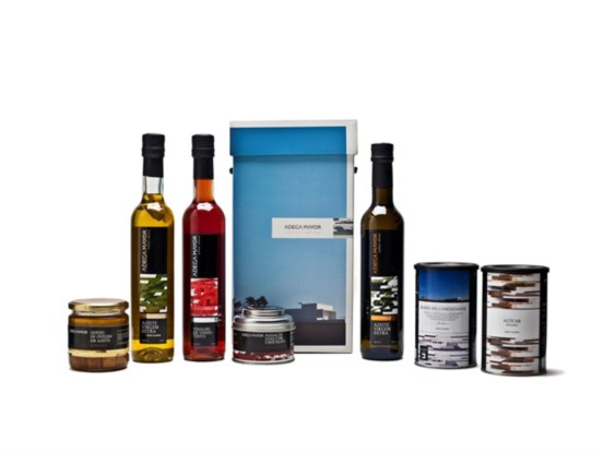 Pack com azeites, vinagre de vinho tinto, passas com chocolate, queijo de ovelha em azeite, blend do comendador e açúcar Adega Mayor €25,88