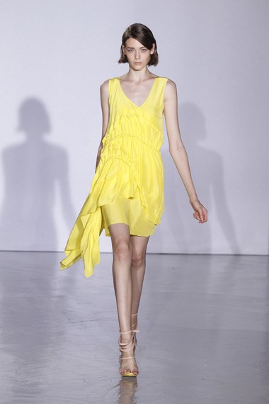 Já os estampados com palmeiras foram algo inédito no trabalho de Luís Buchinho, que explica que o fez para dinamizar o tema: “Não queria fazer um greco-romano com uma palette muito neutra. Queria cor”. Flashs de amarelo surgiram em vestidos e saias, onde o longo e o curto coexistem, ora fluídos ora estruturados. Uma mistura inteligente dos dois universos.