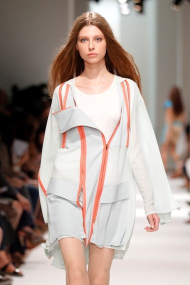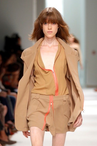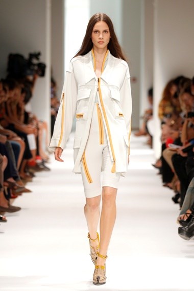 A música começou e a escolha caiu sobre a faixa Kalemba (Wegue Wegue), dos Buraca Som Sistema. “Uma boa descolagem na Place de la Concorde. E a música deve acompanhar sempre o mote da colecção”, justificou Felipe Oliveira Baptista. E também porque a música tem tudo a ver com liberdade, palavra que o criador escolheu para definir as roupas que criou para a próxima estação quente. Uma colecção onde se destacam os cortes de alfaiataria com um toque desportivo que Oliveira Baptista faz com mestria. Silhuetas elegantes de casacos que se desconstroem, calções que se transformam em saias e calças que se abrem completamente graças à utilização de fechos que dão geometria às peças.