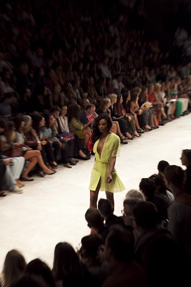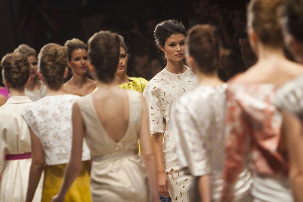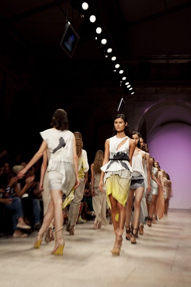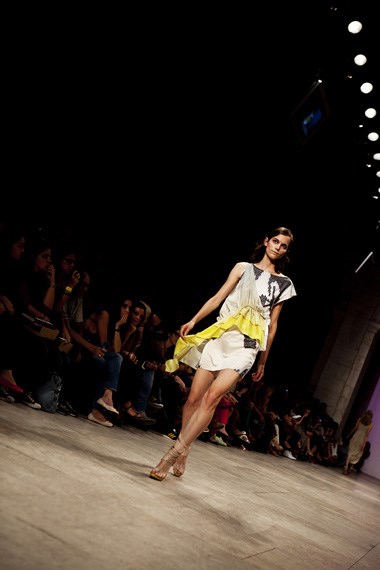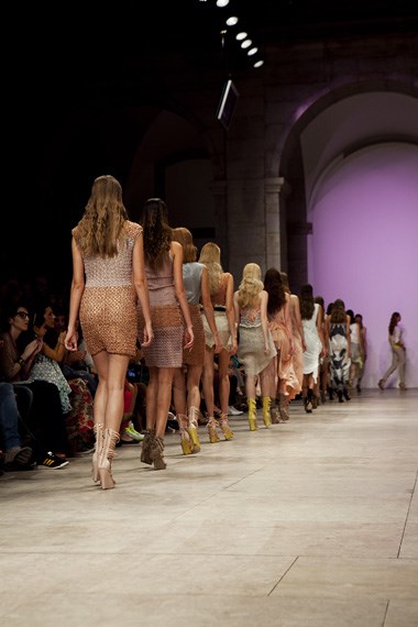 Luís Buchinho preencheu a sala com as suas mulheres urbanas e fluidas , com a presidente da Assembleia da República, Assunção Esteves, na primeira fila da plateia, confirmando tendências - amarelos ácidos, estampados leves e de inspiração natural, algo que Ricardo Preto já tinha explorado no desfile inicial com o rosa e o branco a cheirar a Verão (e que Alves/Gonçalves tinha deixado já no ar na noite anterior). Duas colecções fortes mas em tecidos leves, em contraste com o tom experimental e eficaz de Vítor no espaço LAB, que revisitou o seu guarda-roupa e fez da sua destruição peças compostas de