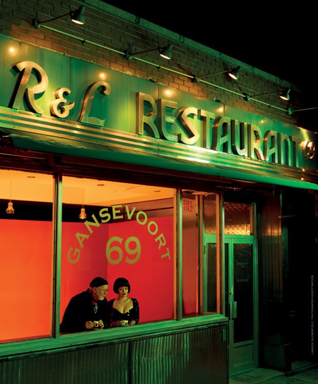 O fotógrafo Albert Watson parece ter retirado alguma inspirado do quadro de Edward Hopper para criar o auto-retrato que ilustra Outubro, Eu e Breaunna ao jantar